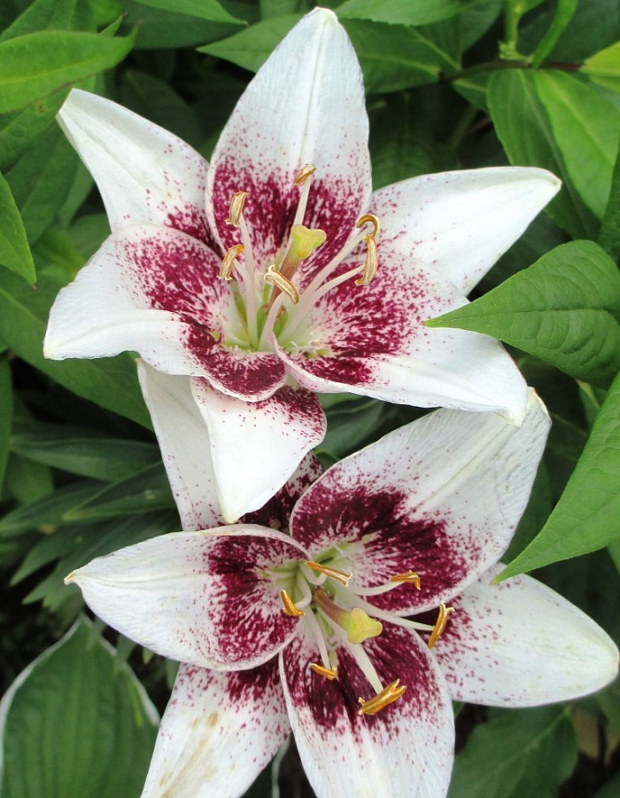 • Окраска цветка : белый с густым вишневым крапом до середины лепестков