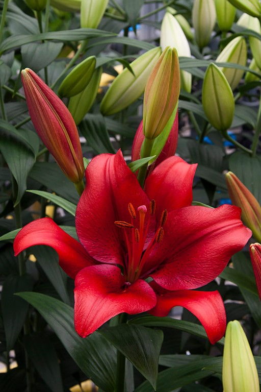 Луковицы лилии ЛА-гибрид Покерфейс были выведены путем скрещивания двух ярких гибридов азиатского типа и лонгифлорум гибрида. От первого в наследие им досталась отличная морозостойкость, а от второго ― невероятно крупные красивые цветки с восковидными лепестками. Покерфейс в период цветения не останется незамеченной даже в большом саду. На цветоносе высотой около 125 сантиметров распускаются огромные ярко-красные, практически алые цветки, на которых почти и не виден характерный крап из-за насыщенного цвета. Посадите эту красавицу в любом месте, она гарантированно привлечет внимание, украсив цветник.