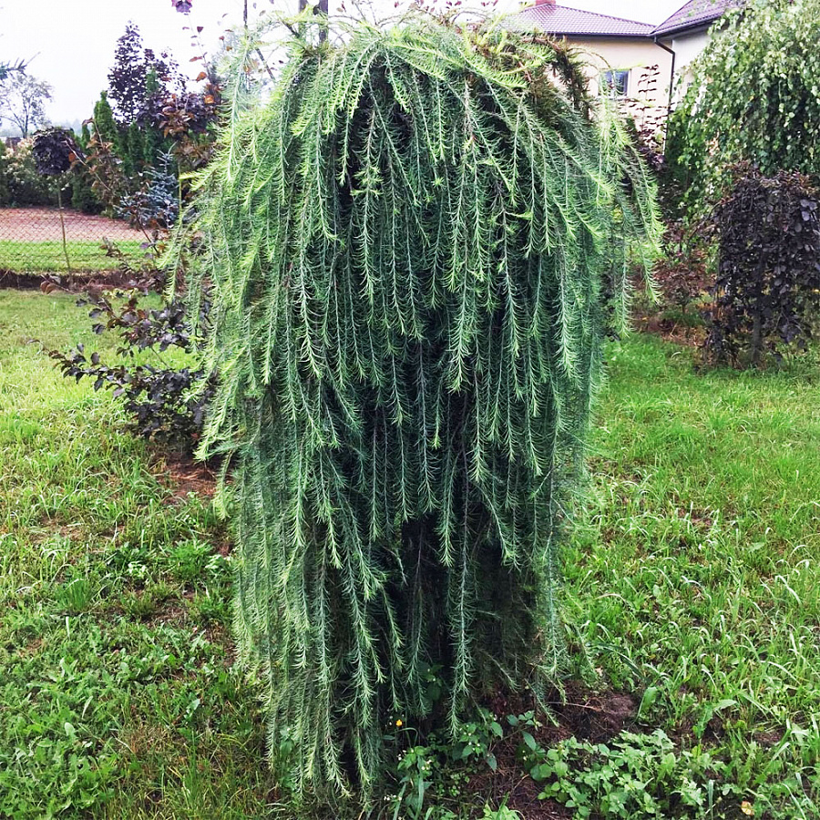 Саженцы лиственницы европейской Пули (Puli) – изумительно декоративные карликовые деревья с поникающими ветвями и нежно-зеленой хвоей. Кончики побегов похожи на светлые кисточки. С наступлением осени хвоя становится золотистой, зимой опадает. Рост крупномера невысок – всего 1,5-2 м. Лиственница европейская Пули высаживается в качестве солитера и сразу приковывает к себе взгляды.