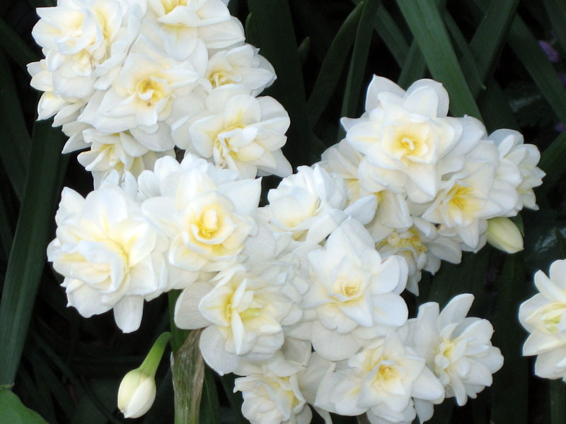 Луковицы нарцисса Карлик Erlicheer нельзя оставлять в грунте на зиму. Поскольку морозостойкость растения невысокая. Зато этот сорт имеет длинный период цветения (цветет на протяжении 2-3 недель). Хорошо растет на полном солнце или в полутени. Нарцисс Карлик Erlicheer имеет группу от 15 до 20 цветков, собранных в один букет на одном стебле. Окрашены лепестки в нежный бело-желтый оттенок. Бутоны пушистые, смотрятся очень эффектно группами и вместе с другими весеннецветущими культурами.