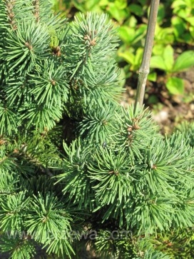 Саженцы Псевдотсуги Мензиса Канина (Kanina) – сорт, который люди ценят за медленный рост, высота за много лет не превысит трёх метров. Всходы у этого растения жесткие, можно сказать жесткие. Кроной Мензиса Канина устремляется вверх, а нижние ветви растут горизонтально. Зелёные хвойные игры с голубыми полосками плотно облепляют побеги, но они совсем не колючие.